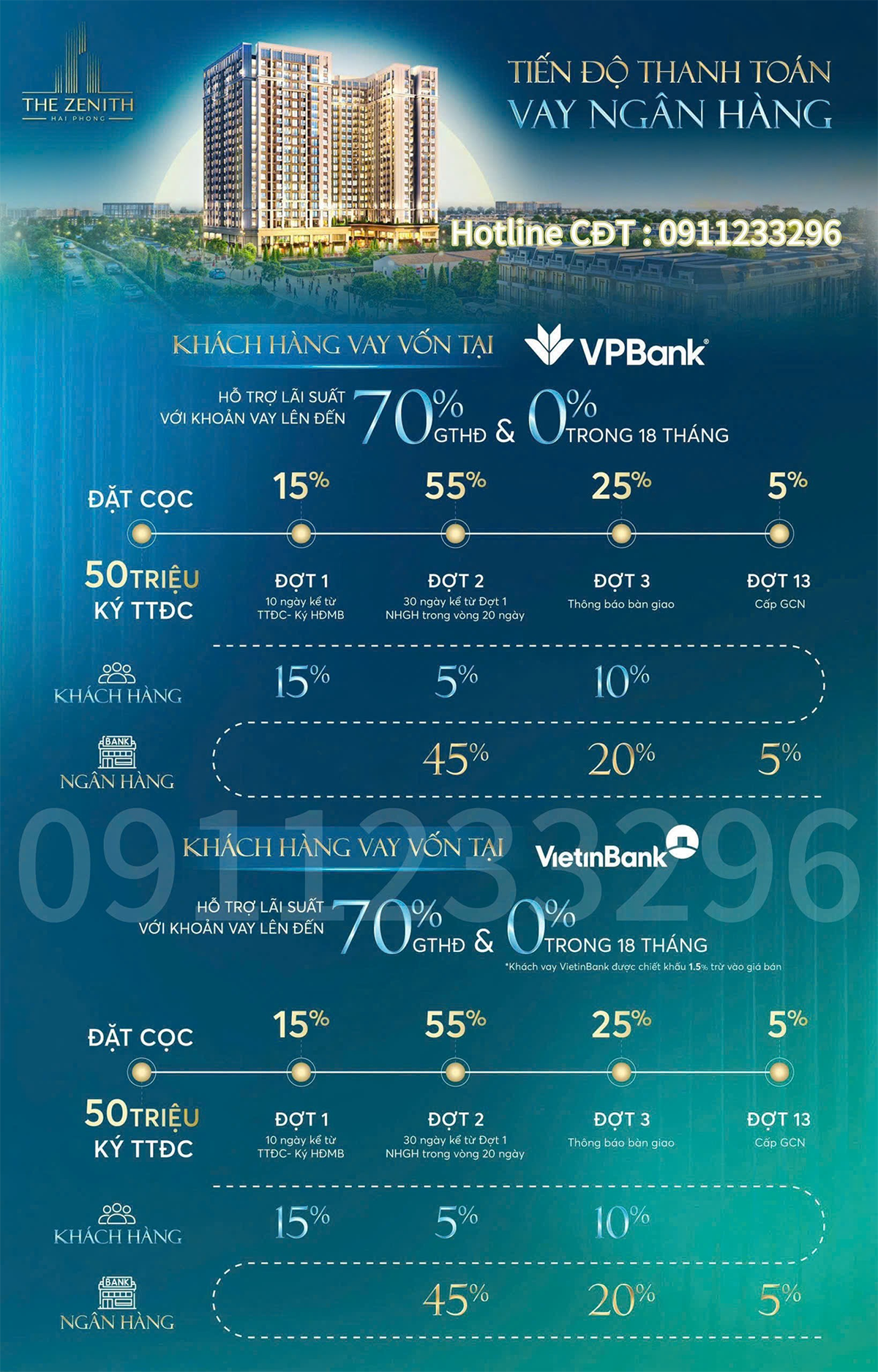 – Thanh toán theo tiến độ chuẩn chiết khấu 6,5%