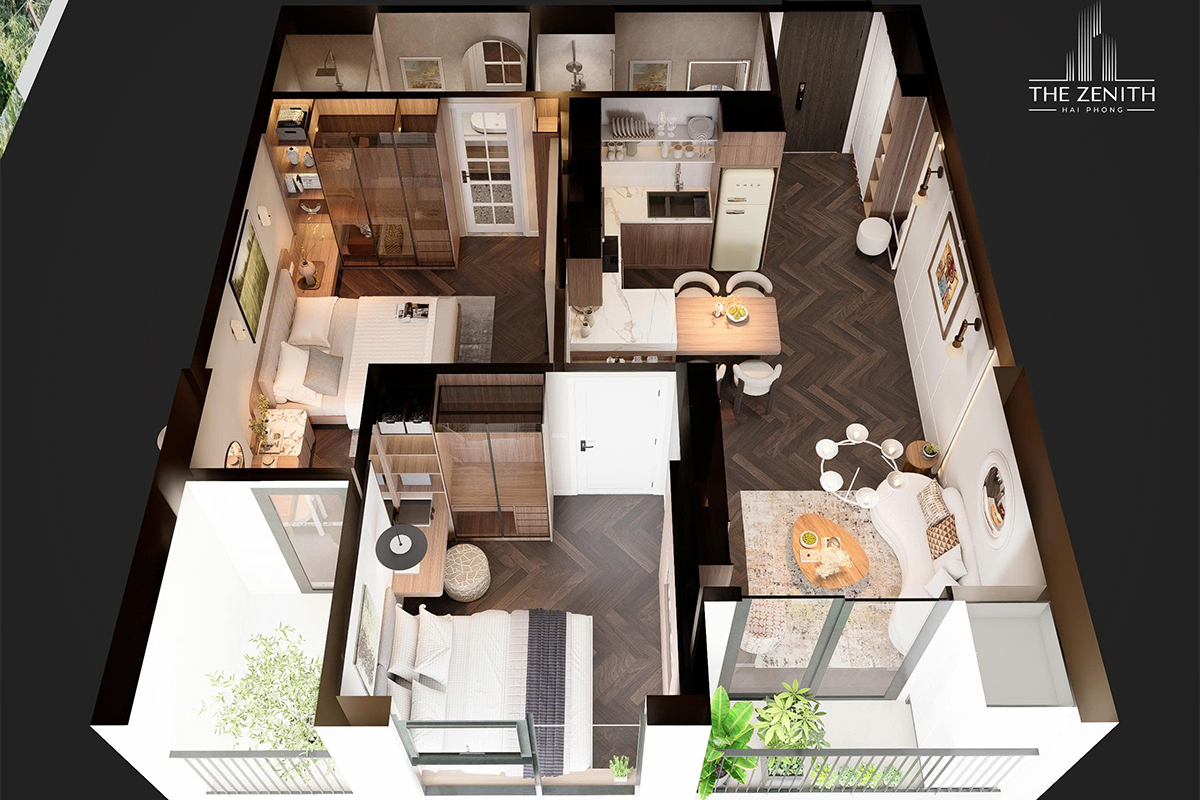 - Căn 2 PN: Diện tích từ 64 – 79,8m²